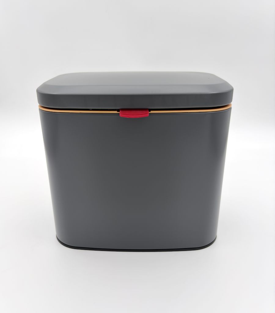سطل کابینتی ۴ لیتری استیل رنگی با درب دوحالته طوسی