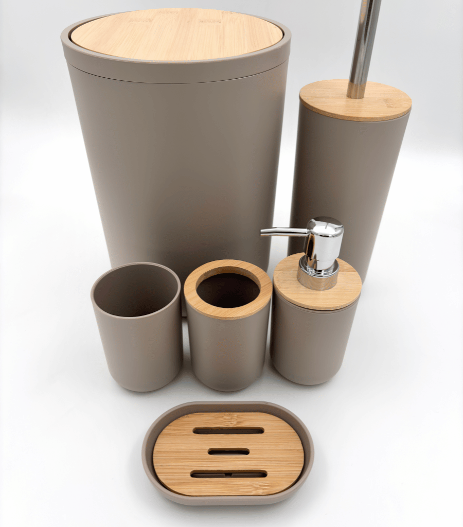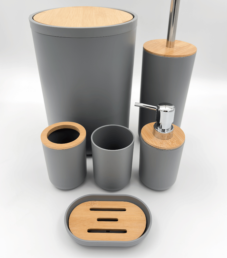 ست بهداشتی شش پارچه درب بامبو طوسی